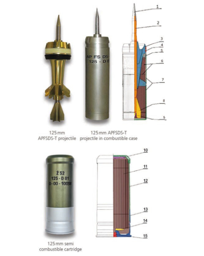 Podkalibrowy pocisk przeciwpancerny stabilizowany brzechwowo (z odrzucanym sabotem i smugaczem) jest podkalibrową amunicją przeciwpancerną rozdzielnego ładowania przeznaczoną do niszczenia celów opancerzonych takich jak czołgi lub inne pojazdy opancerzone. Maksymalna przebijalność pancerza wynosi 550 mm RHA z dystansu 2 000 m. Penetrator wykonany jest ze stopu wolframu, wyposażonego w stabilizator brzechwowy ze smugaczem. Pocisk zabudowany jest w łusce spalającej się z ładunkiem prochowym. Inicjacja następuje od zapłonnika o działaniu mechanicznym lub elektrycznym.